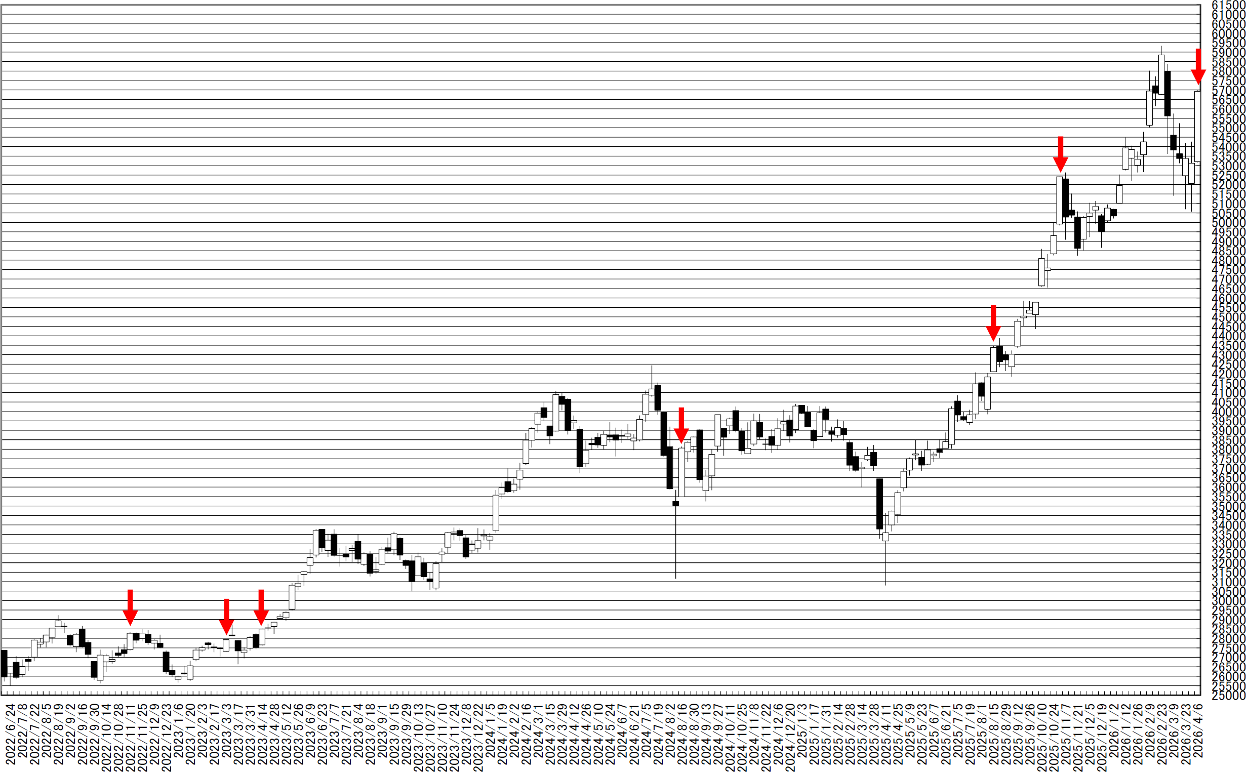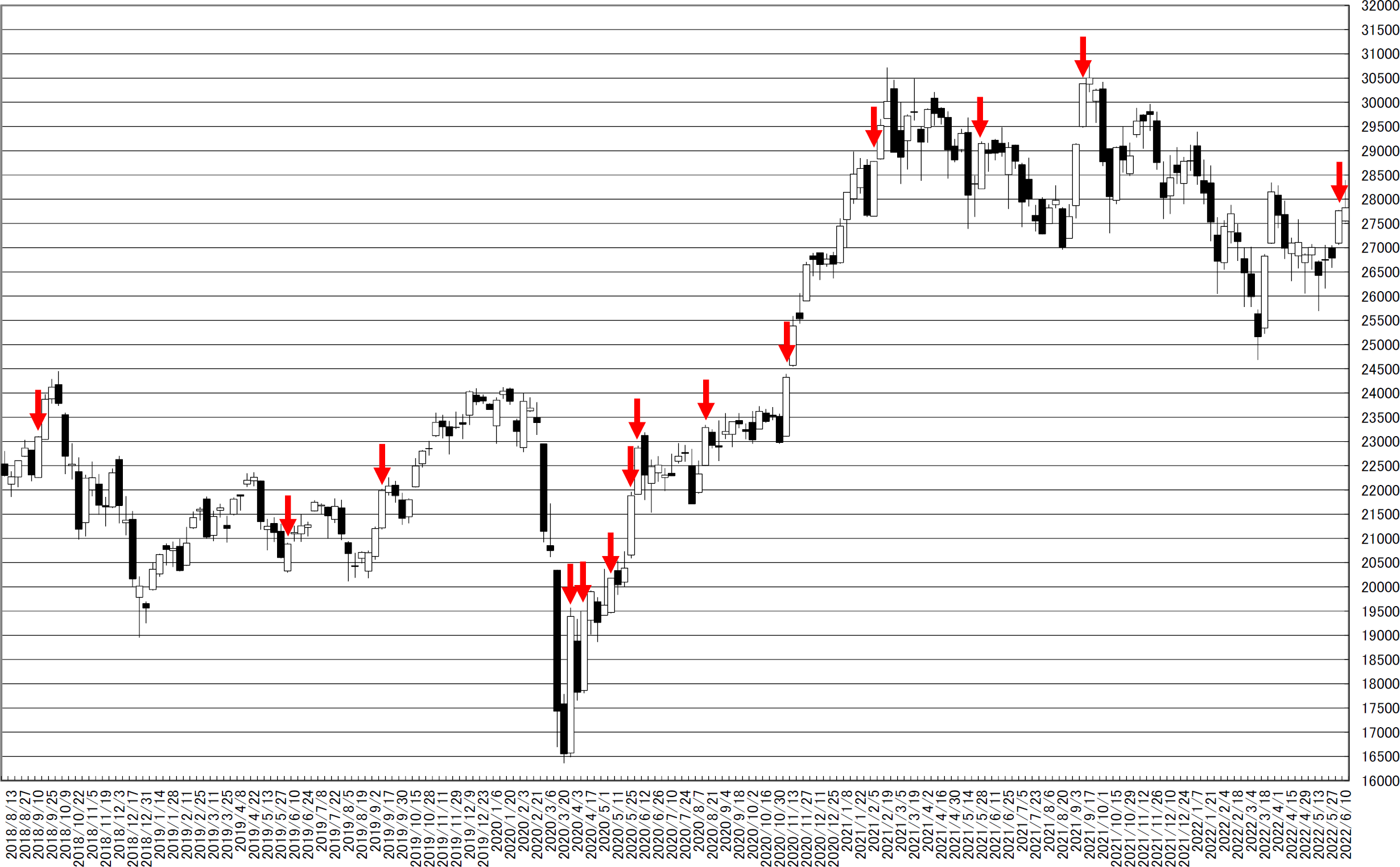 日経平均週足・羽黒8号線・基本は上値追い