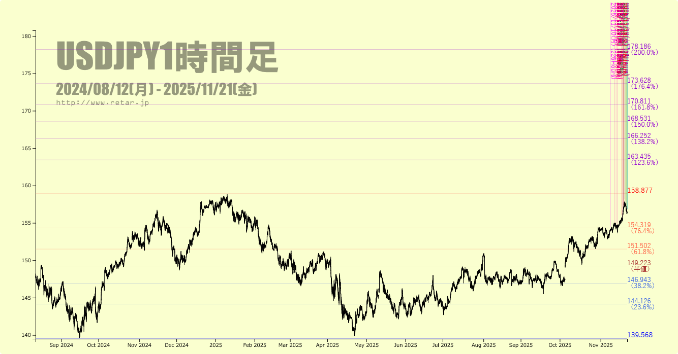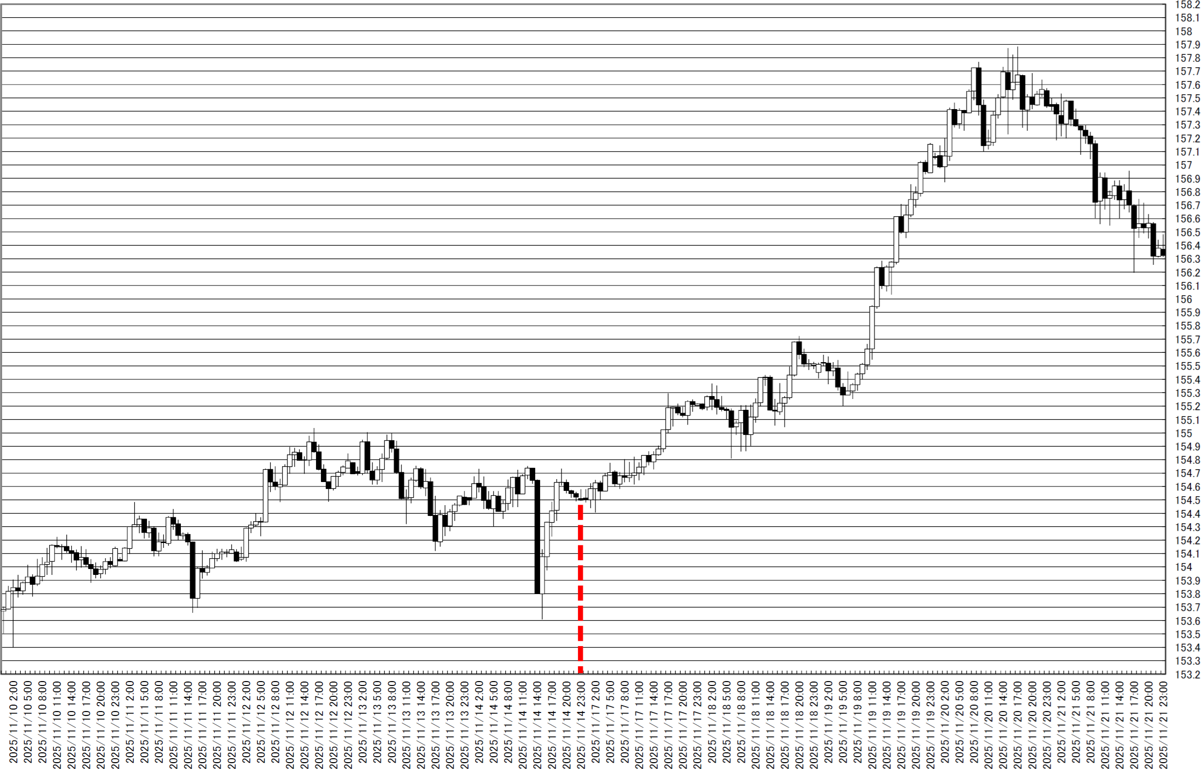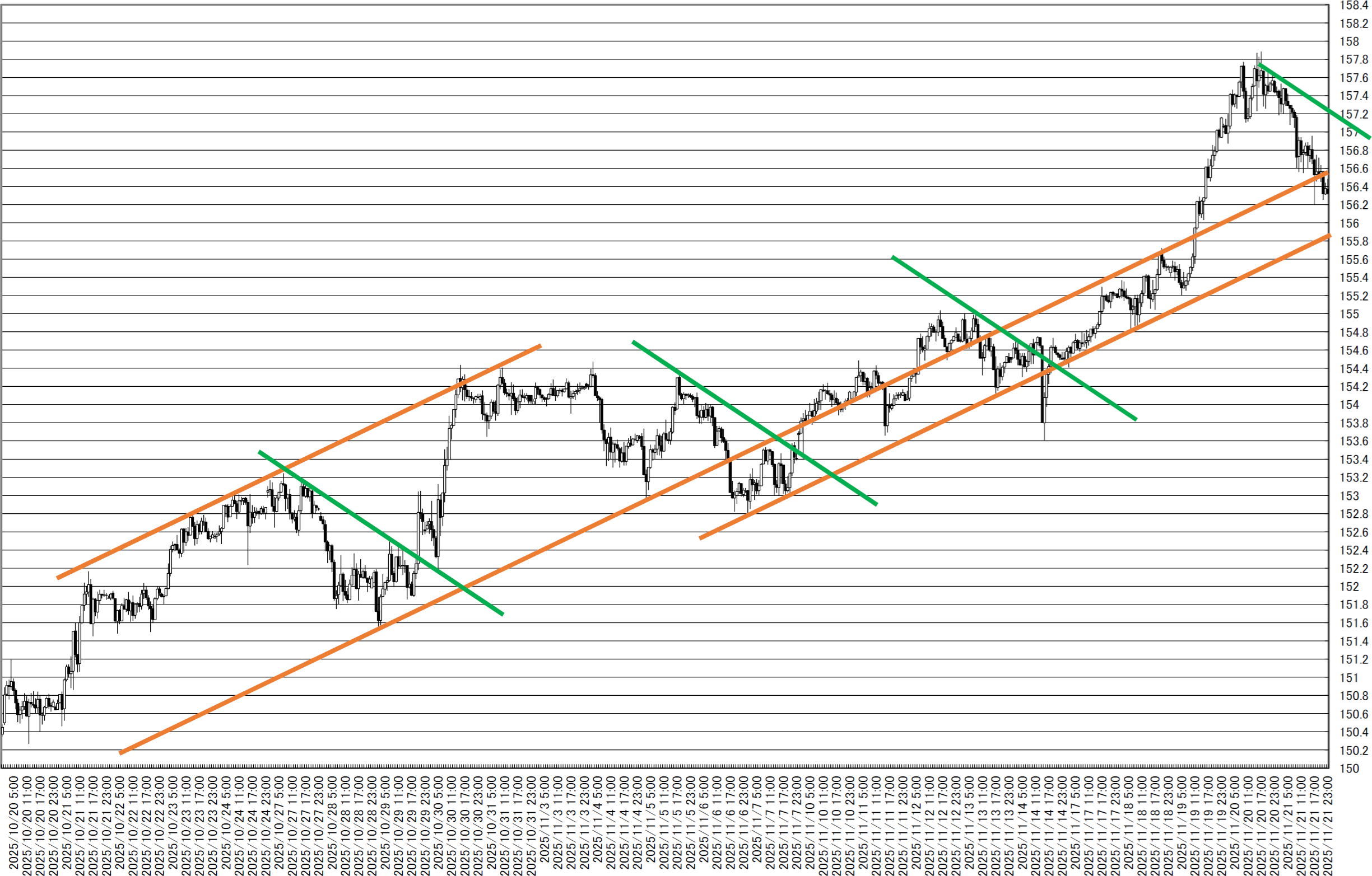 「ドル円1時間足・引き続き、円安が進みそうです」(2025/11/17)