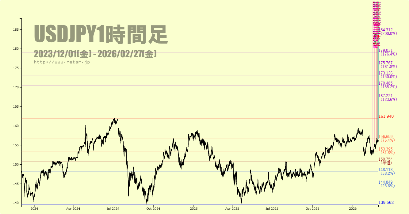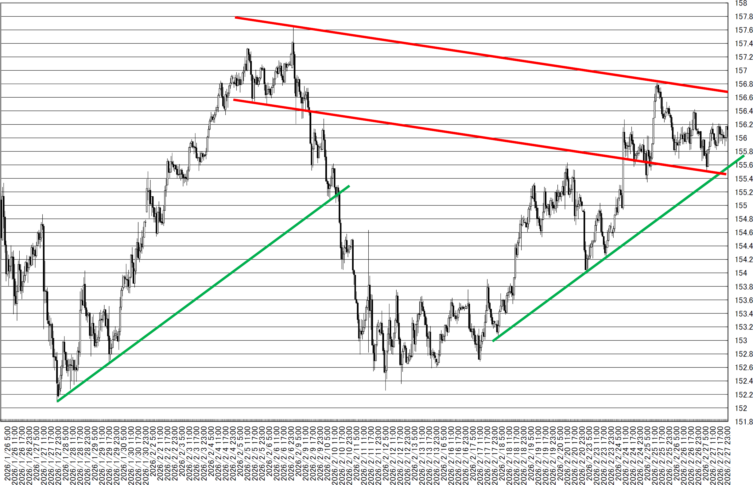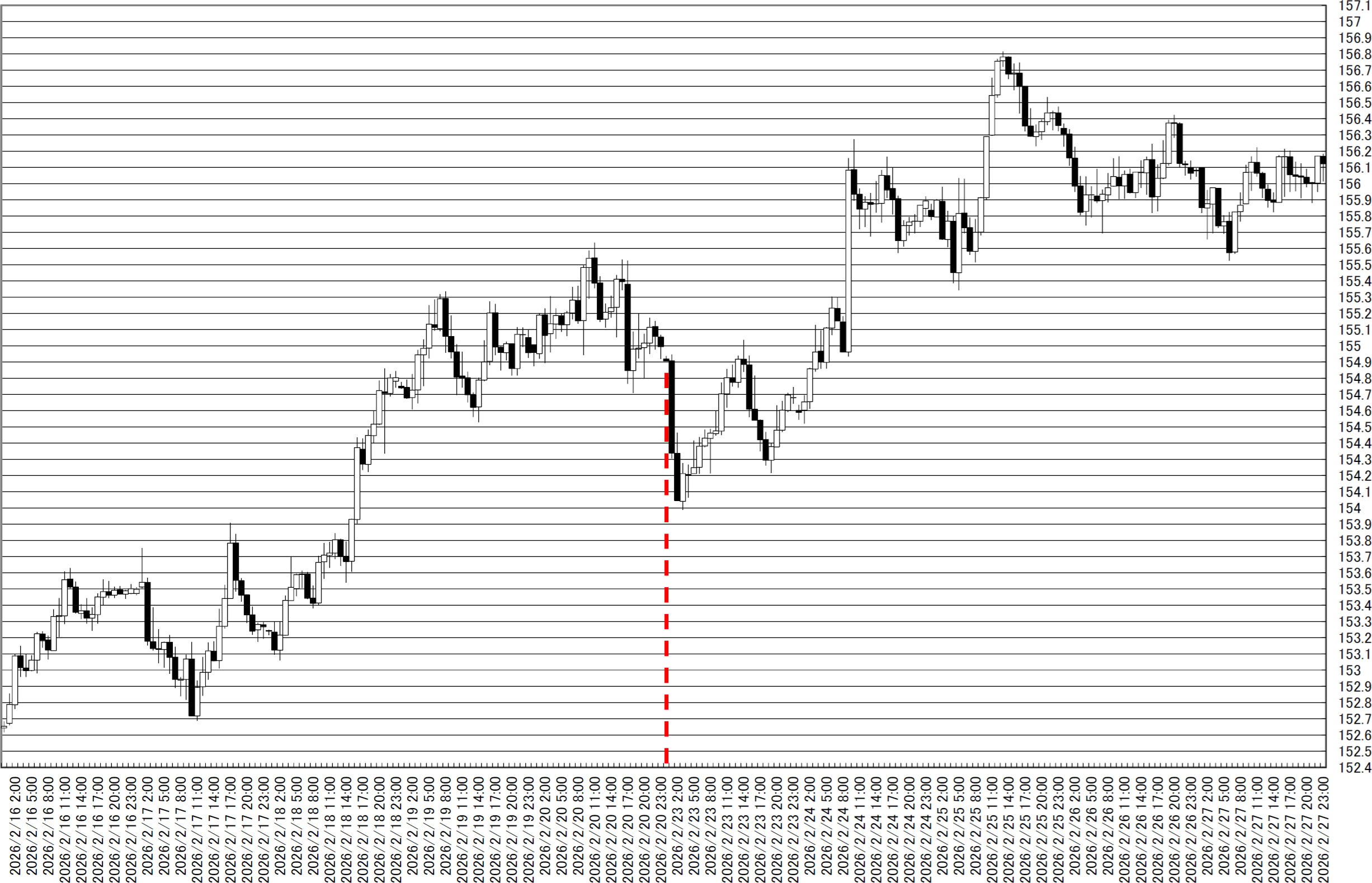 「ドル円1時間足・引き続き、円安と円高の両にらみで」(2026/2/23)