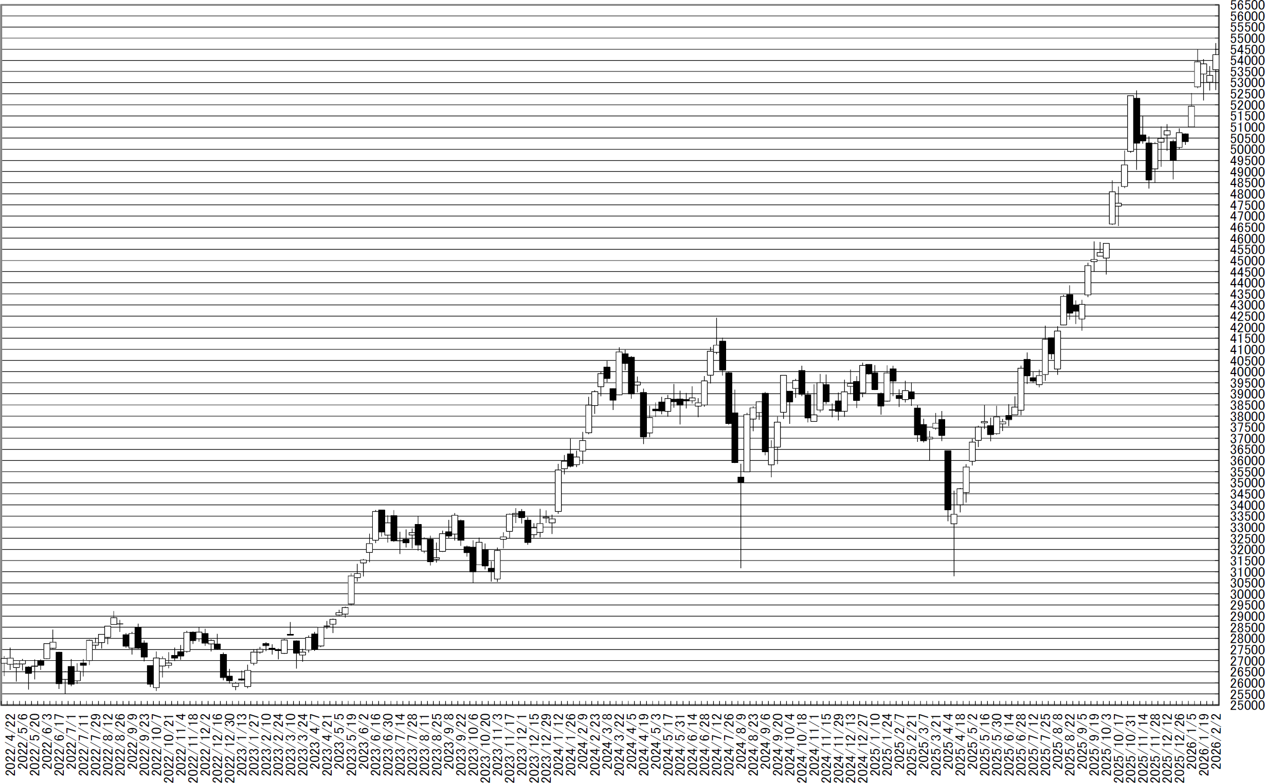 日経平均週足・羽黒2号線・羽黒足からの印象なし