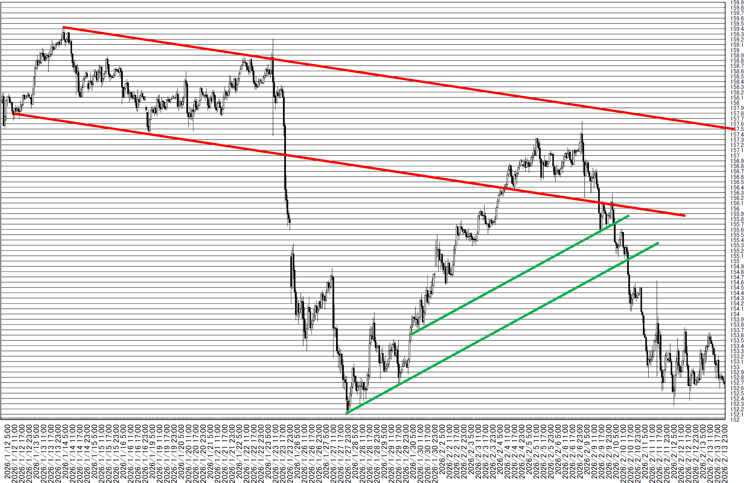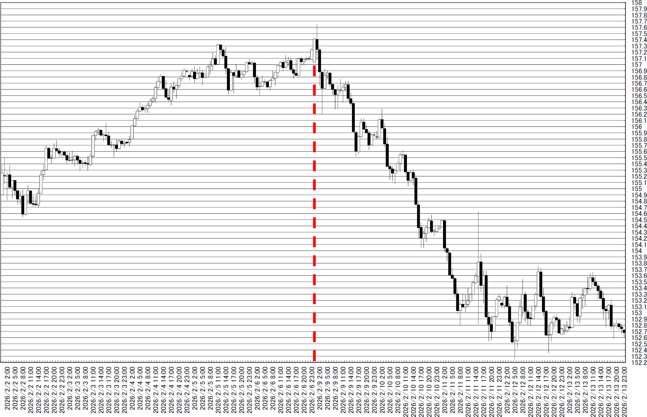 「ドル円1時間足・円安で“ホクホク”しすぎて介入試しでは?」(2026/2/9)