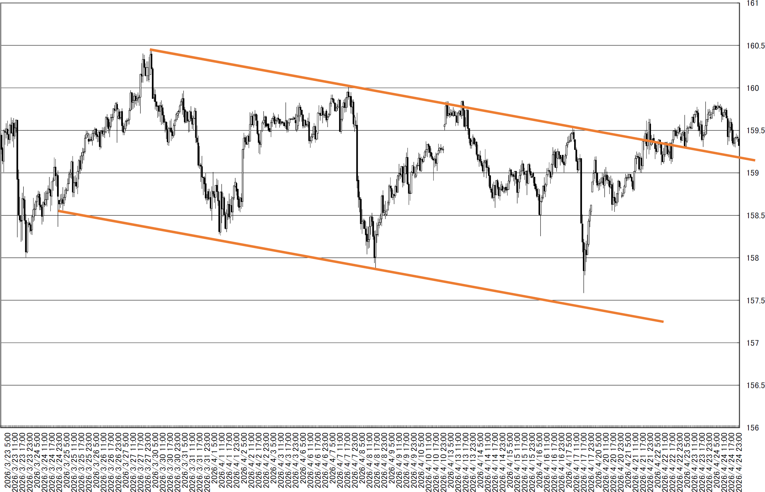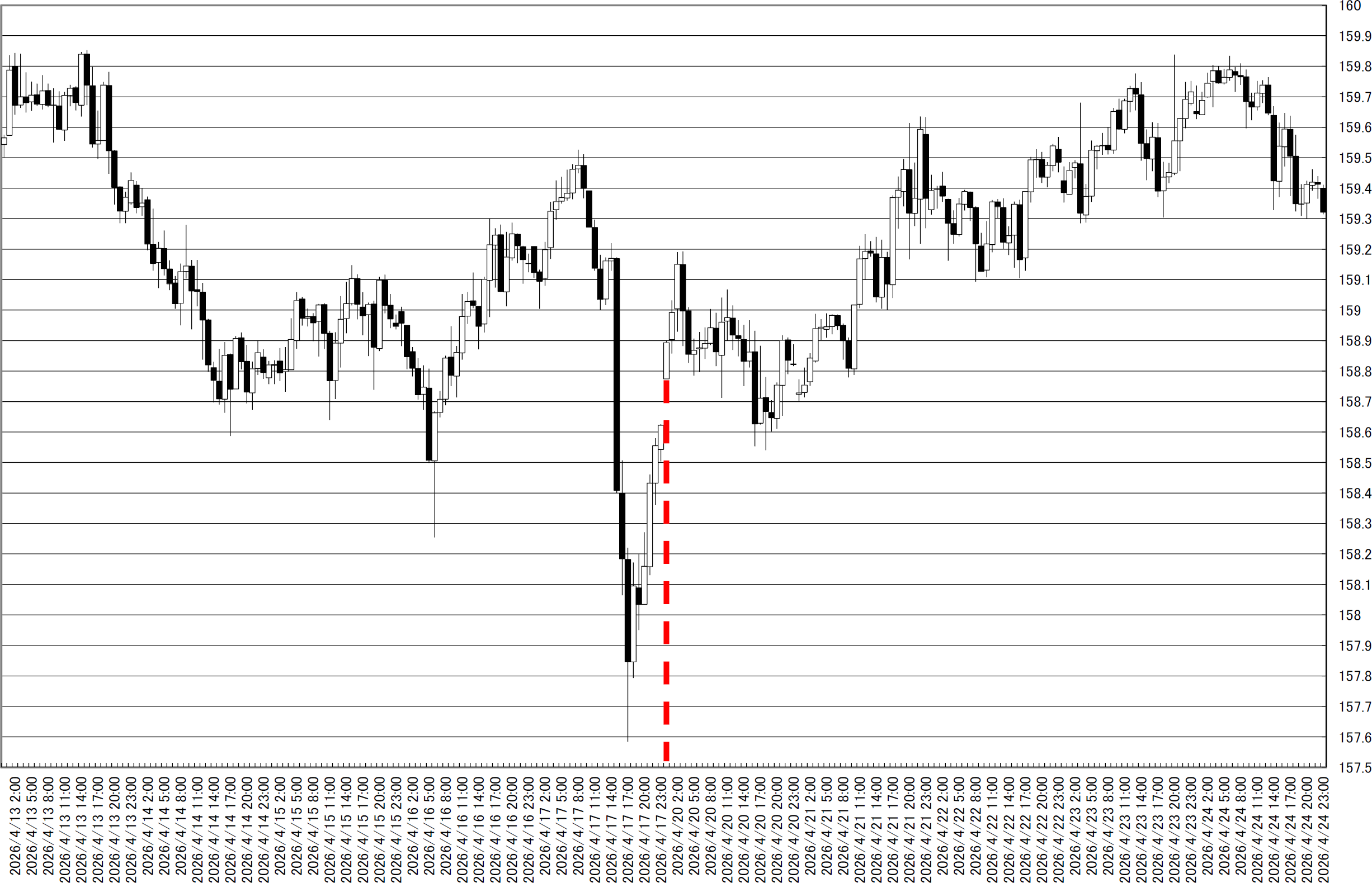 「ドル円1時間足・157円ミドルを割るようなら円高では?」(2026/4/20)